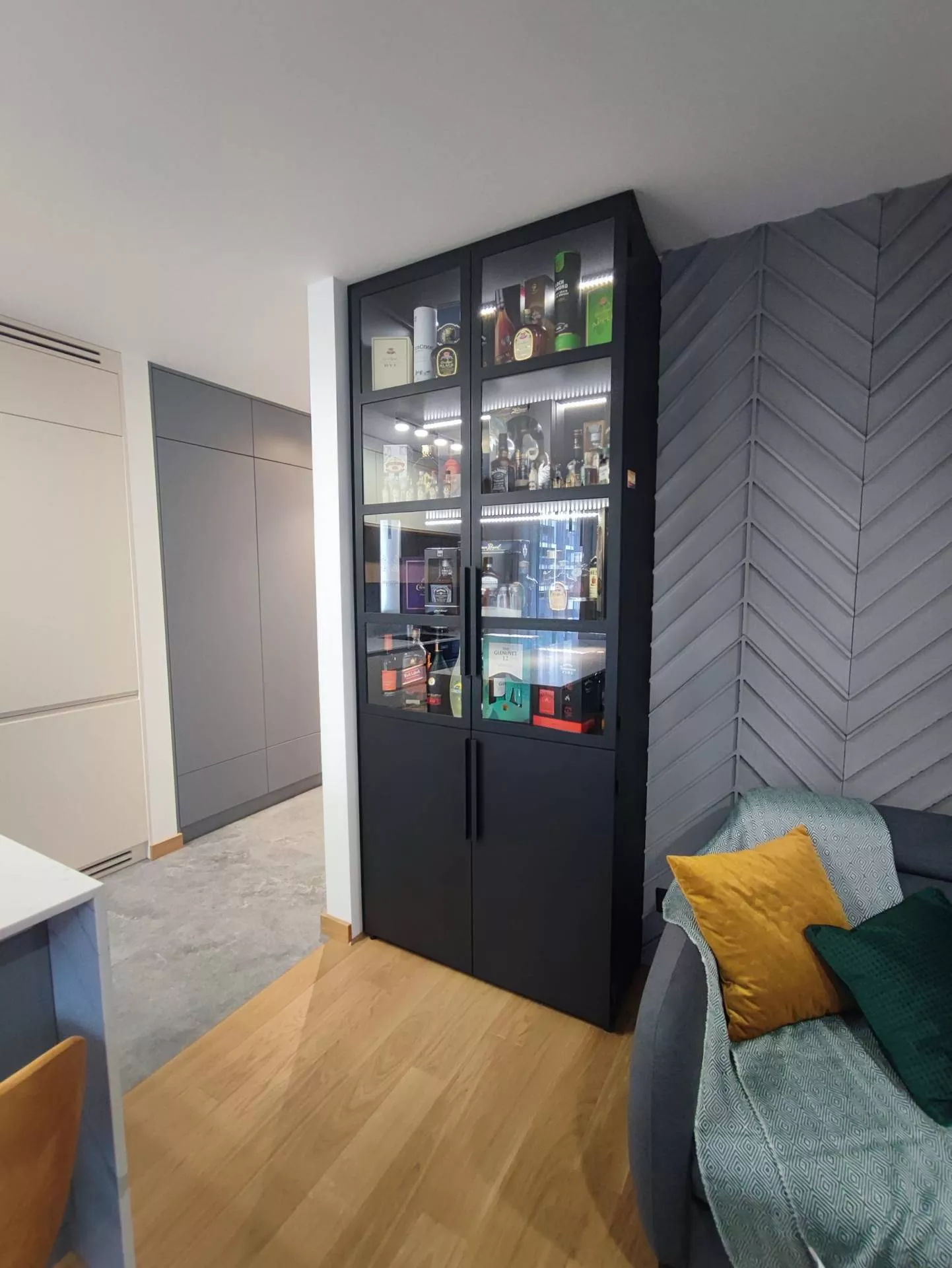 Jeśli zależy nam na uzyskaniu klasycznego stylu, można wybrać uchwyty w kolorze srebrnym lub mosiężnym. Taki wybór będzie idealnie komponował się z ciemnymi zielonymi frontami. Jeśli natomiast chcemy uzyskać bardziej nowoczesny wygląd kuchni, warto postawić na uchwyty bez uchwytów (system otwierania typu push to open), które dodatkowo ułatwią korzystanie z szafek i szuflad.